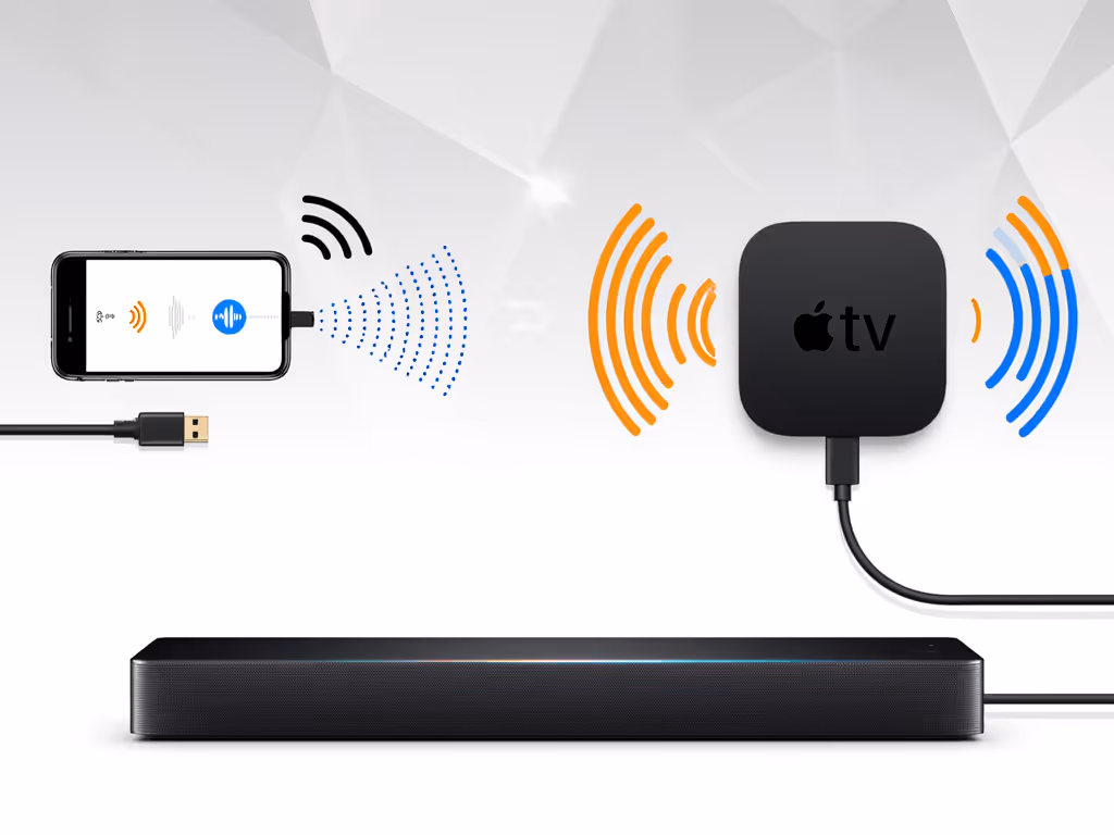 When you use AirPlay 2 to stream from your iPhone to a soundbar, you're getting a high-quality stereo signal (not the immersive experience you'd get through HDMI eARC). For true spatial cues and Atmos effects, you must connect your Apple TV directly to the soundbar via HDMI. Not sure whether to use HDMI ARC/eARC or optical? See our ARC vs Optical latency and feature guide.